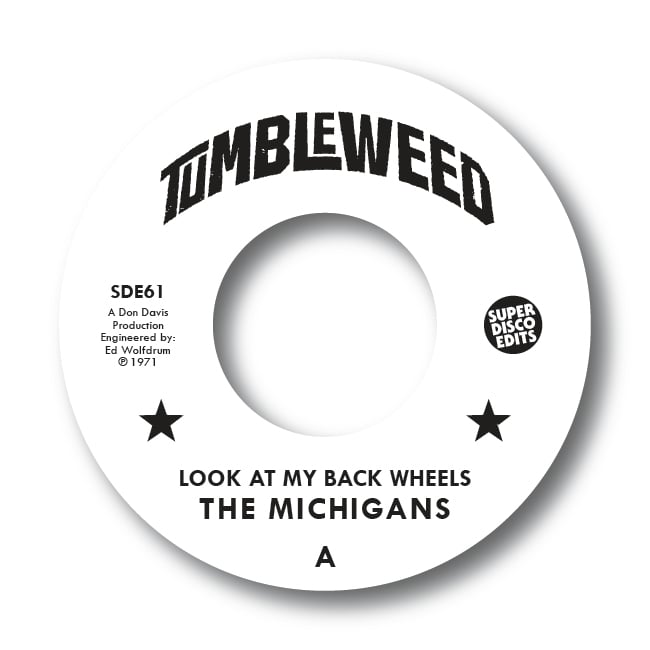 Well as you know we like to mix things up here at Super Disco Edits, and we are taking it back to raw unissued studio funk with a slightly risqué message. We don't know too much about The Michigans, but it comes from the Don Davis studios, engineered by the legendary and recently departed Ed Wolfdrum. What you get on "Look At My Back Wheels" is raw blue eyed funk with a Hip Hop producers dream. Some ripe open drums and a stab to cut up chop. Not only that half way through the song drives along with a motoring baseline over the drums. Flip it over and an equally as nice down blues style soul song called "Its All Coming Back" that sounds like its could have been Ocean Colour Scene or a except from Chicago Porty Authority!